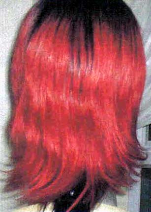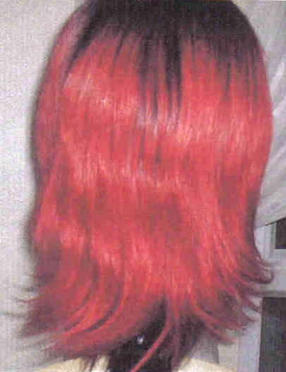 BACK VIEW OF RED & BLACK RAZOR CUT HUMAN HAIR WIG